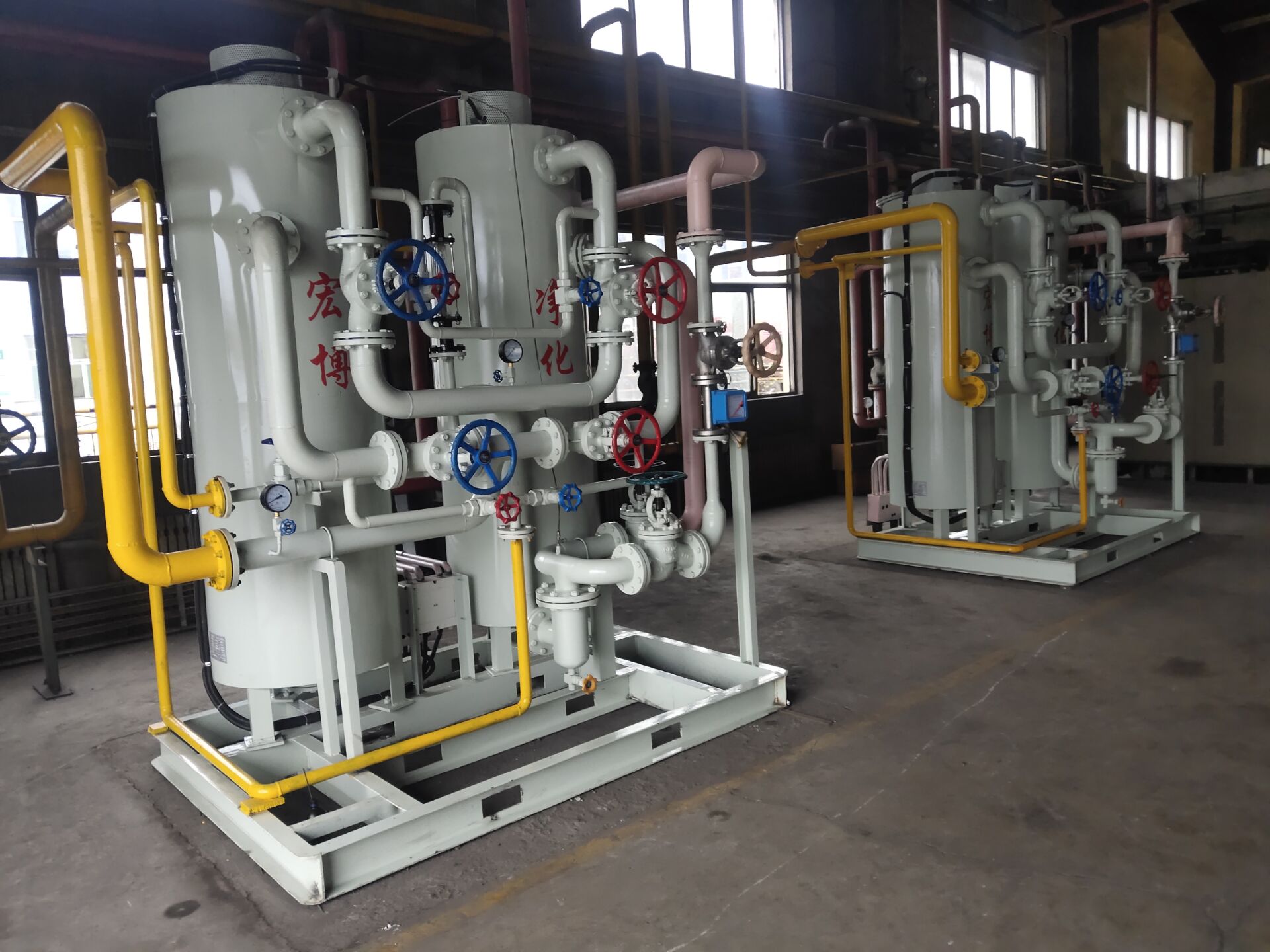 如需純度更高的氣體,氨分解出來的氣體再進(jìn)入純化裝置除水、除氧,純化裝置中兩個干燥器交換使用,連續(xù)供氣,最后經(jīng)過濾器,流量顯示送到客戶使用點。